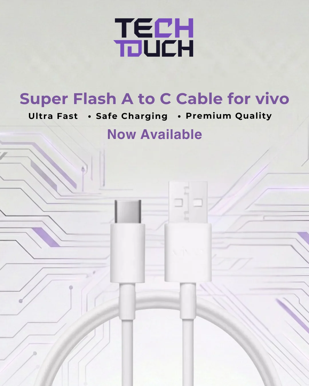 Say goodbye to slow charging and laggy data transfers. The Vivo Super Flash Charging Cable is built for speed, reliability, and serious performance. Whether you’re powering up your Vivo device or any gadget that supports Type-C, this cable brings the power and precision you need.