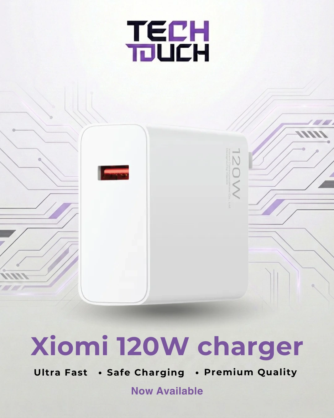 Every unit at TechTouch.PK is authentic, tested, and backed by warranty, ensuring complete peace of mind. At just Rs. 9,000, this is the best 120W charger in Pakistan — a perfect match for Xiaomi flagships and any USB-C fast-charging device.